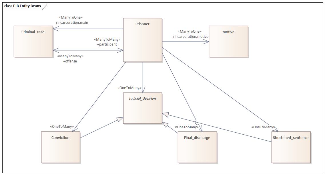 navigation in figure aboveSELECT p FROM Prisoner p WHERE ?1 MEMBER OF p._offense